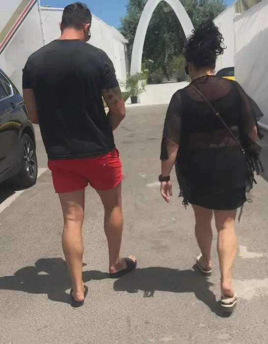 A apărut la plajă cu iubițelul bodyguard + trabuc Toscanello, un Hublot și costum de baie-plasă