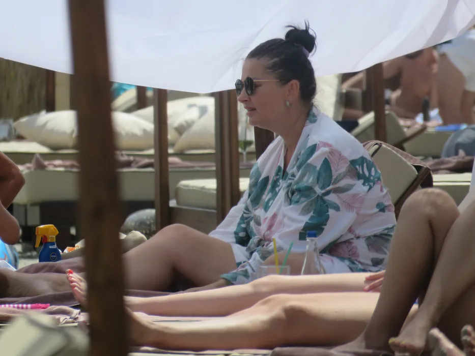 Gabriela Cristea, îmbrăcată pe plajă