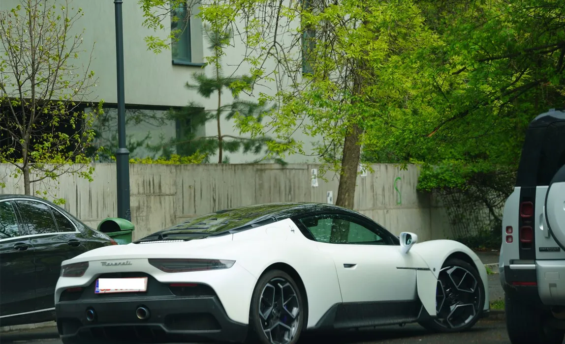 J.F. și-a mai achiziționat o ”bijuterie” pe patru roți, un Maserati alb, de 630 de cai putere (Foto: CANCAN.RO)