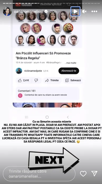 Oana Roman l-a demascat pe vlogger /Foto: Instagram