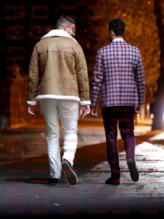 Tânărul merge relaxat pe stradă, cu cojocul pe el