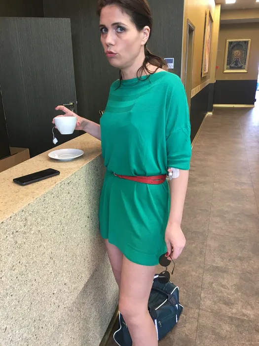 Aida bea un ceai înainte de externare. Vedeta are încă branula în mână