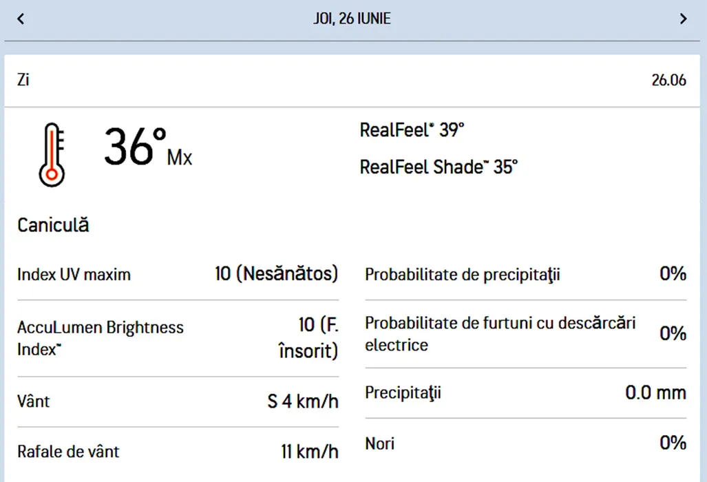 Alertă București, 26 iunie. Sursa foto: Accuweather