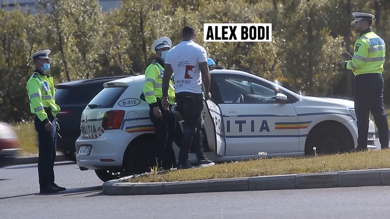 Alex Bodi discută cu agentul care l-a oprit