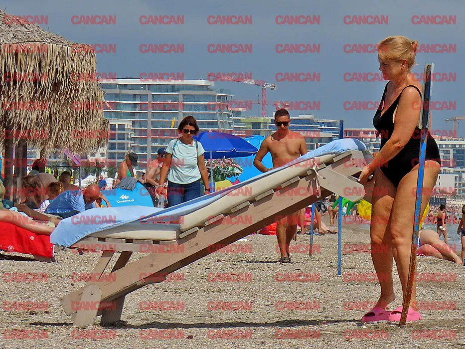 Alice Dumitrescu cară un șezlong. (sursă - CANCAN.RO)