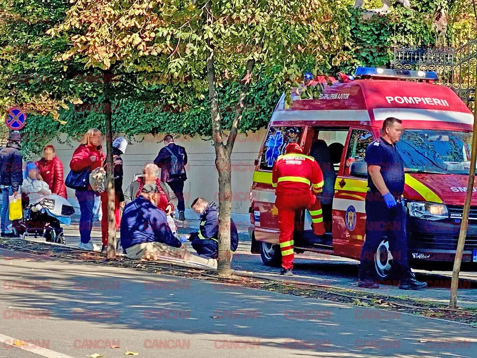 O persoană a primit îngrijiri medicale, în fața casei latifundiarului din Pipera / sursă: CANCAN.RO