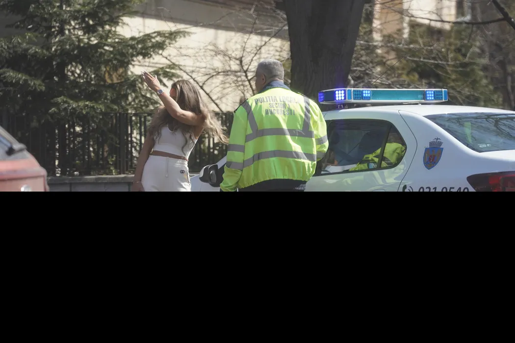 Bianca îi dă explicații polițistului (Foto: CANCAN.RO)