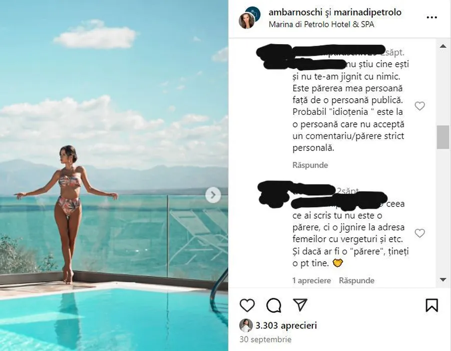 Ana Maria Barnoschi, taxată aspru pentru apariția la piscină. Un fan, nemulțumit de câte vergeturi are