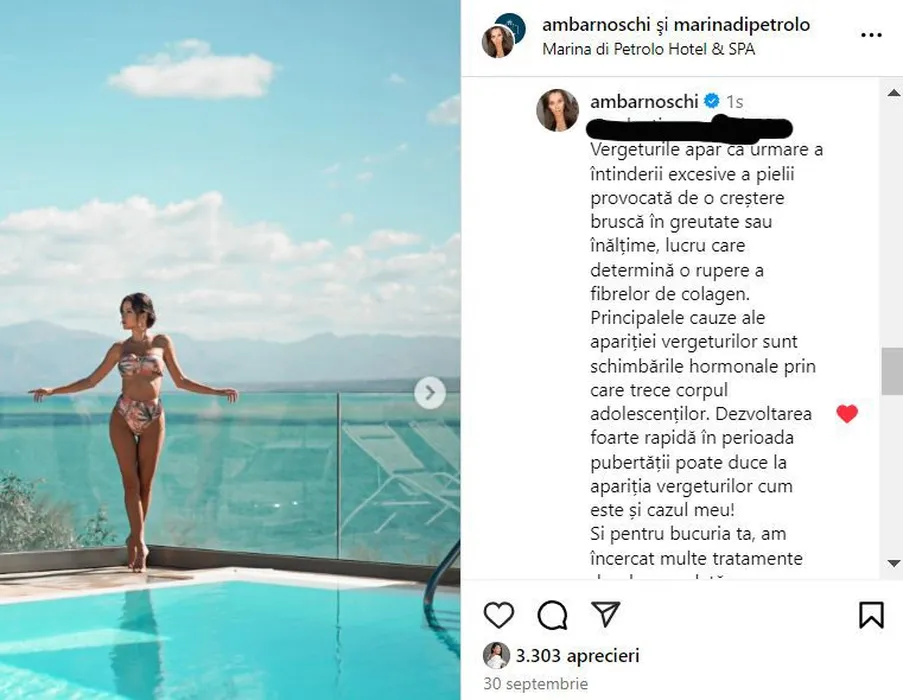 Ana Maria Barnoschi, taxată aspru pentru apariția la piscină. Un fan, nemulțumit de câte vergeturi are