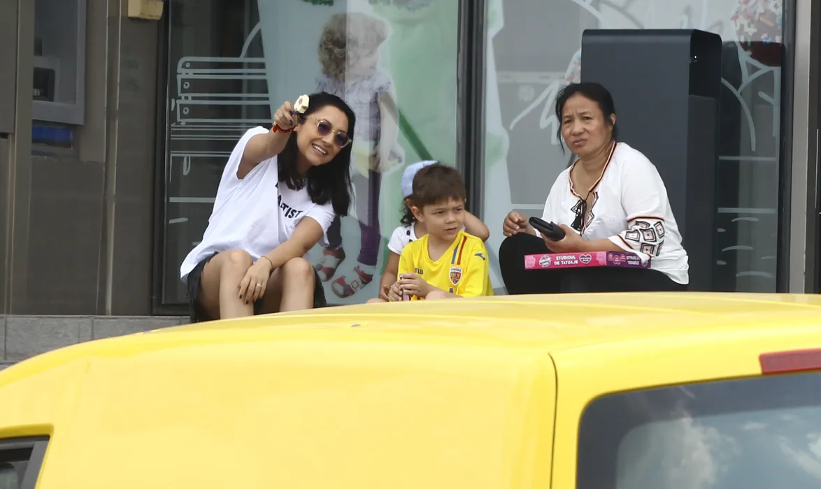 Andra a savurat o înghețată alături de copii pe scările unui supermarket