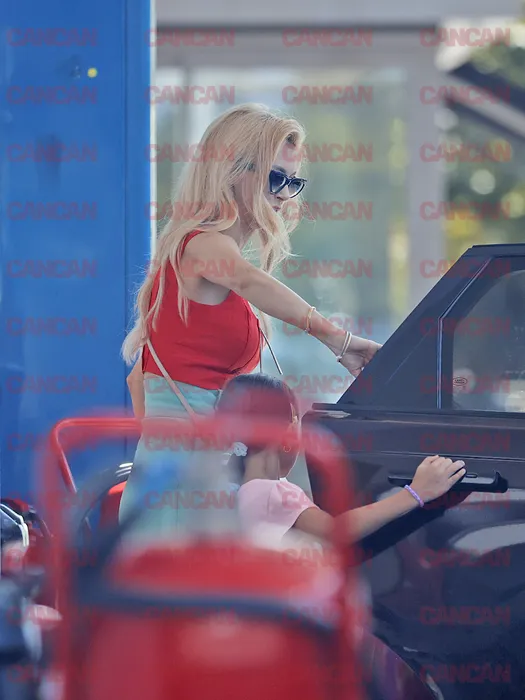 Ella deschide portiera mașinii, iar mezina intră prima urmată de fata cea mare