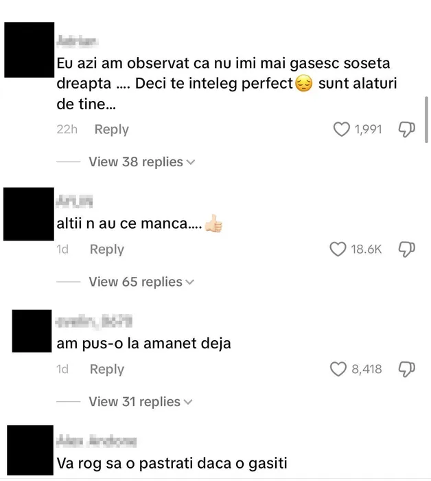 Comentarii la postarea Andreei Bostănică. Sursă: TikTok