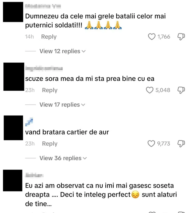 Comentarii la postarea Andreei Bostănică. Sursă: TikTok