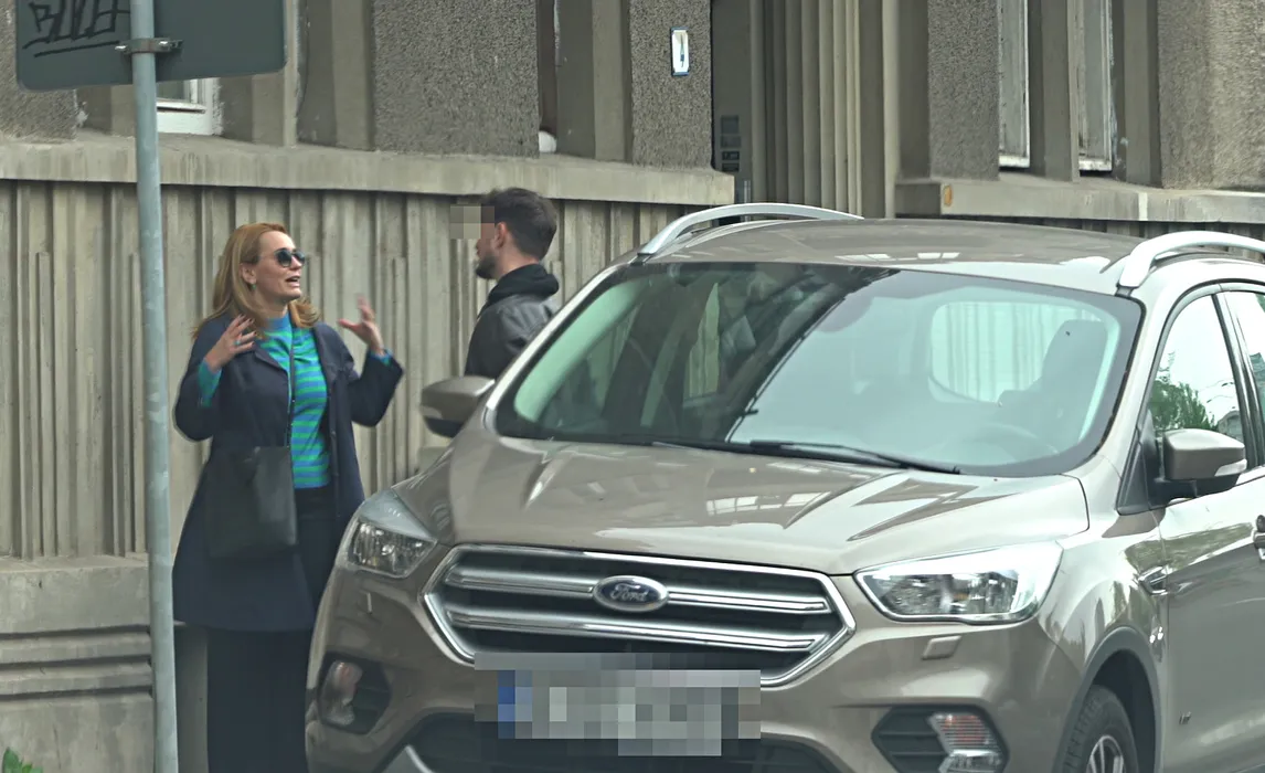 Andreea Esca gesticulează, iar "Puștiulică" se uită în ochii ei (Foto: CANCAN.RO)