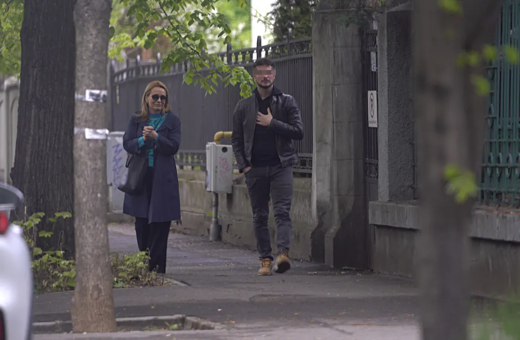 Adreea Esca zâmbește în timp ce vorbește cu amicul ei (Foto: CANCAN.RO)