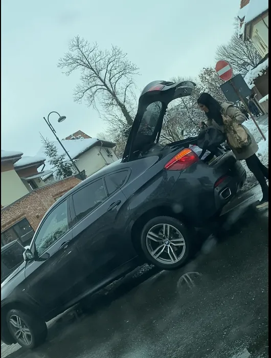 Andreea Tonciu scoate hainele din portbagaj