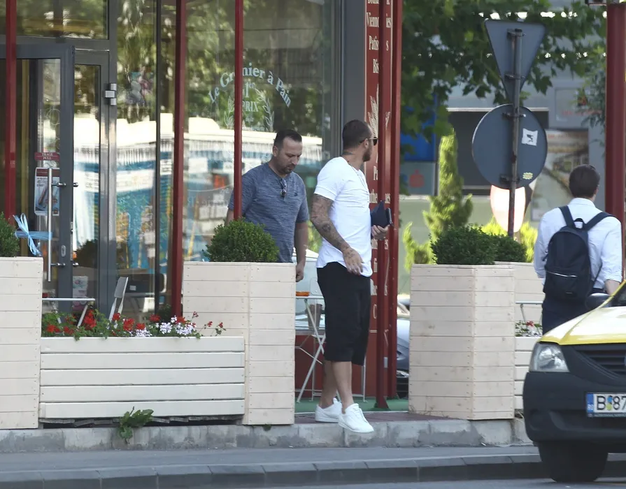 Denis Alibec și prietenul lui ies din cafenea