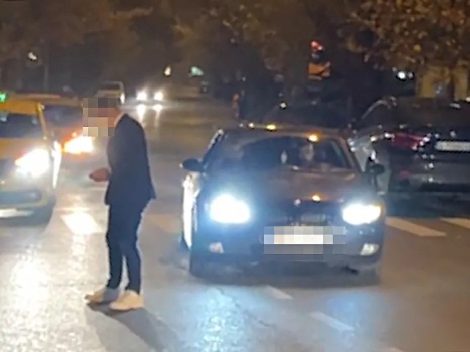 Tânărul rămâne în mijlocul străzii, punându-și viața în pericol (SURSA FOTO: CANCAN.RO)