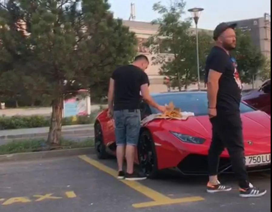 Au mâncat ca ”șantieriștii” pe capota unui Lamborghini de 200.000 €!