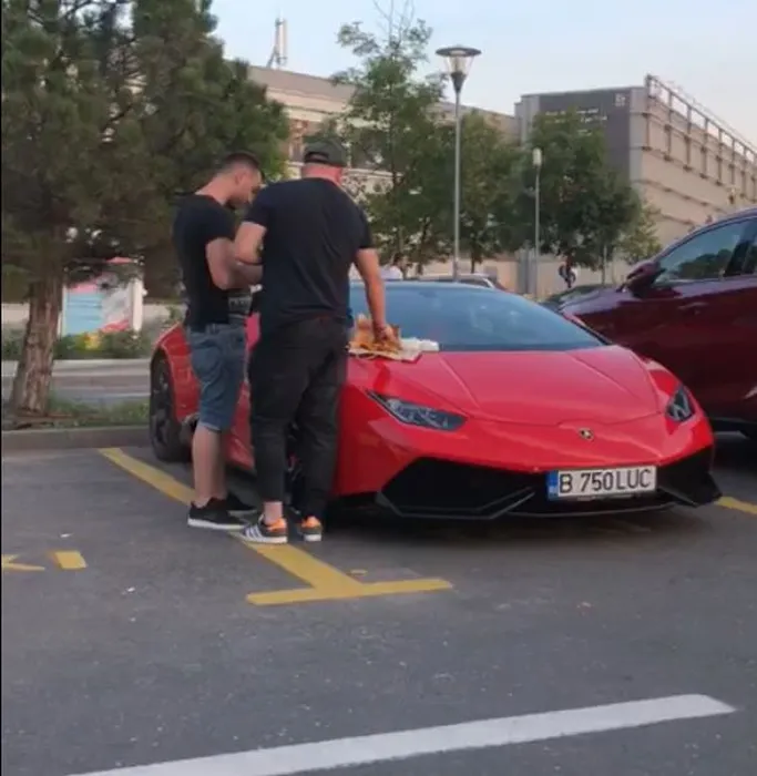 Au mâncat ca ”șantieriștii” pe capota unui Lamborghini de 200.000 €!