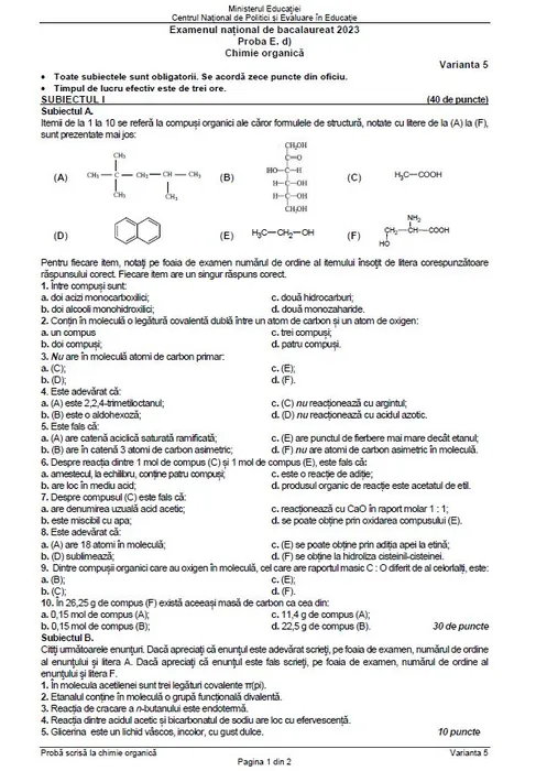Subiectele la Chimie Organică (Part I)