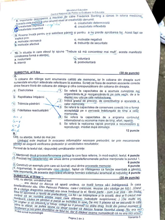 Subiectele la Psihologie (partea II)