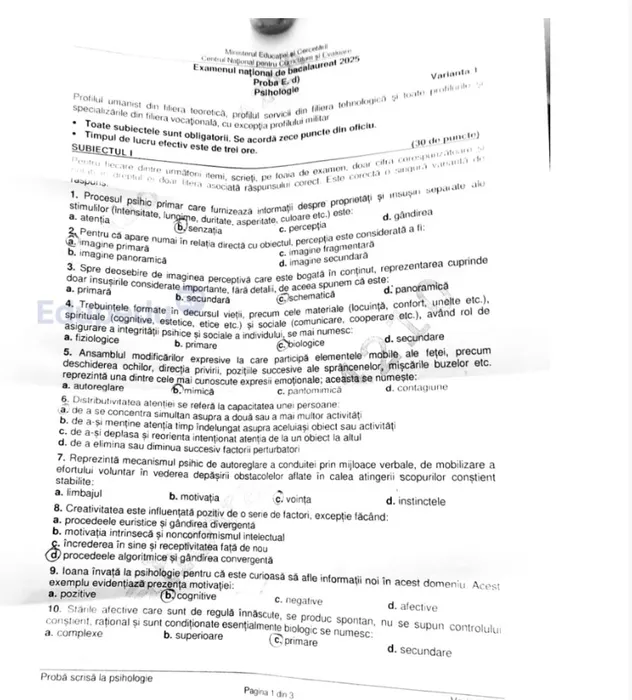 Subiect psihologie/ Sursa foto: Edupedu.ro
