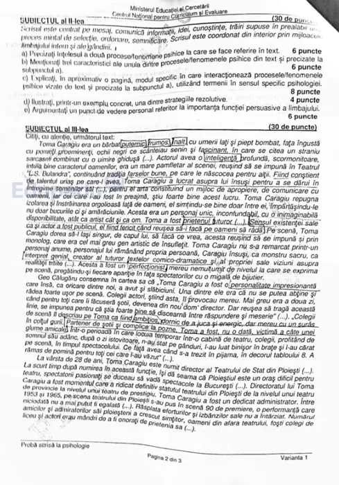Subiect psihologie/ Sursa foto: Edupedu.ro