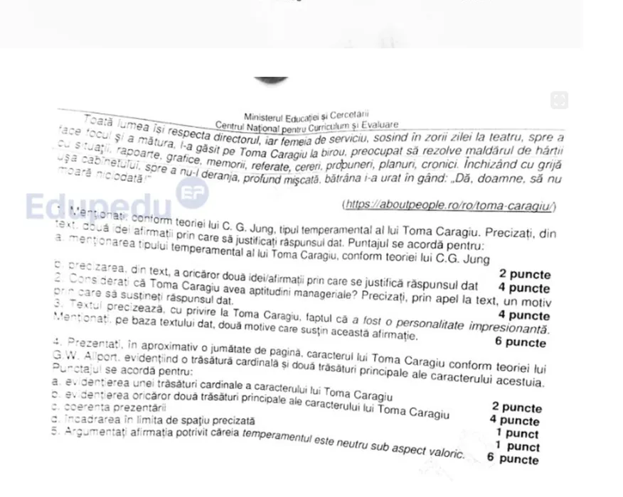 Subiect psihologie/ Sursa foto: Edupedu.ro