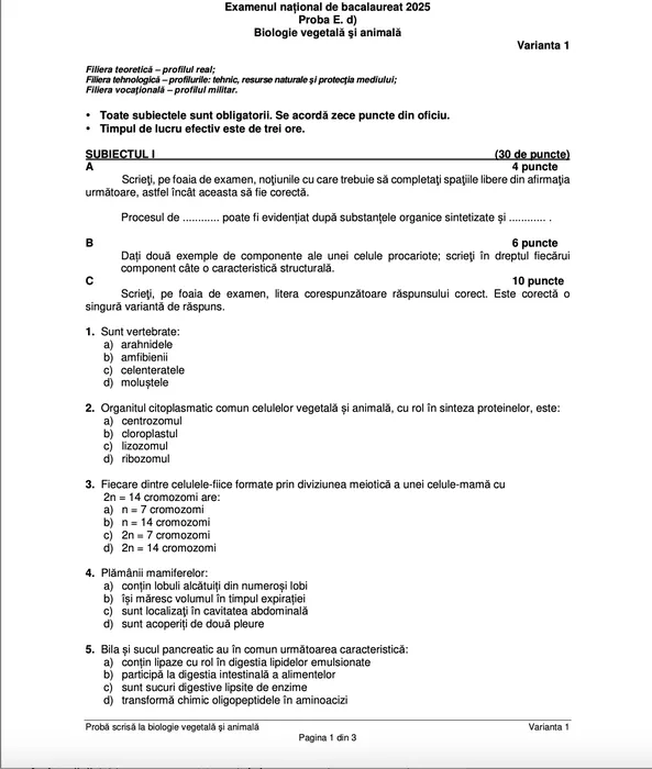 Bacalaureat 2025 | Subiectele de la chimie, biologie și anatomie, de la BAC 2025