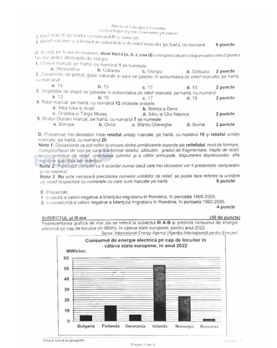 Subiect geografie/ Sursa foto: Edupedu.ro