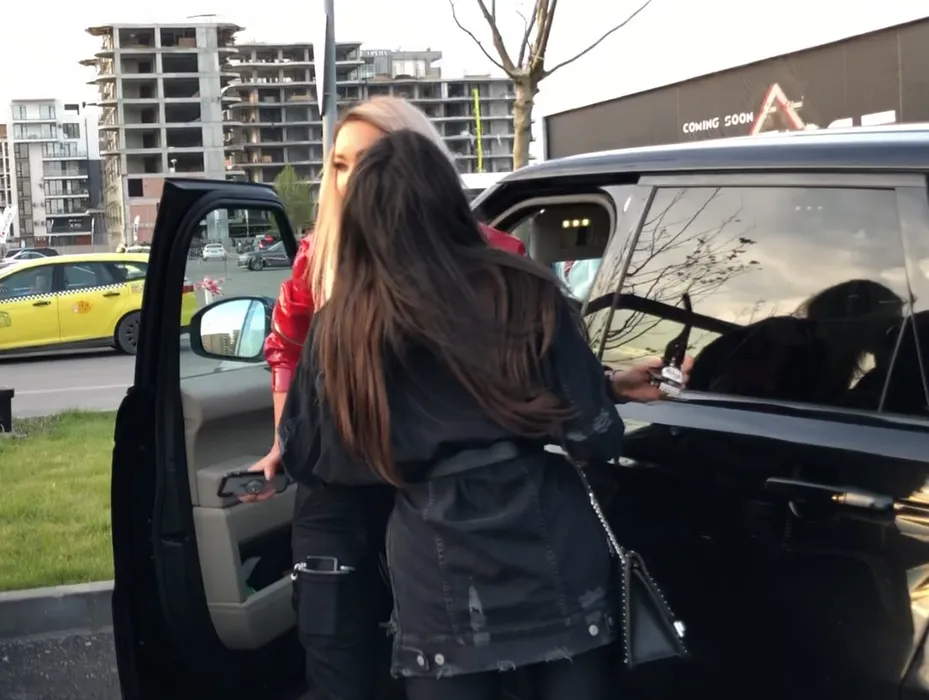 Bianca Drăgușanu și Monica Hill, în parcarea clubului Nuba din Mamaia
