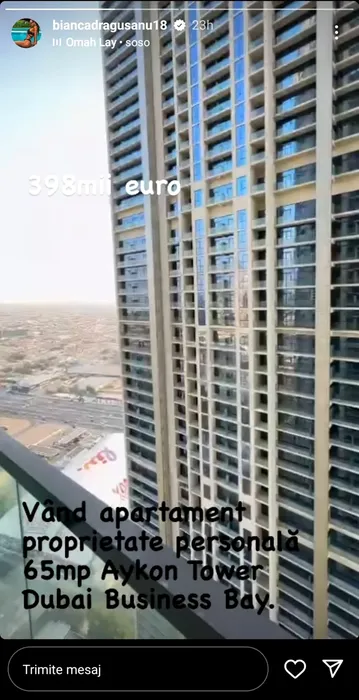 Bianca Drăgușanu a mai scăzut din prețul exorbitant al apartamentului din Dubai. Câți euro cere acum pentru locuința aflată într-un complex rezidențial de lux