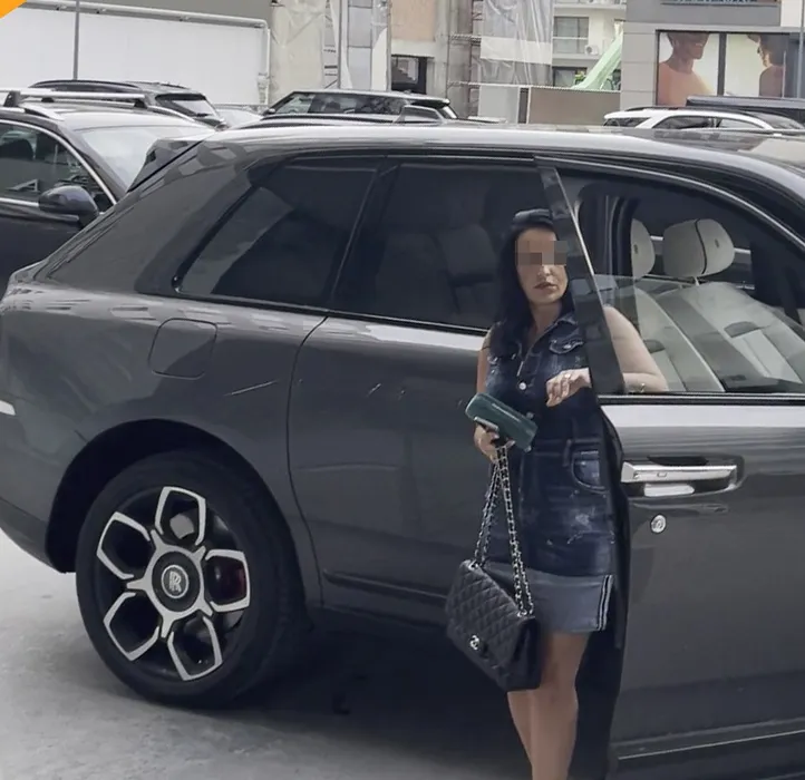 Soția lui Simion Apreutese coboară din Rolls-Royce-ul Cullinan