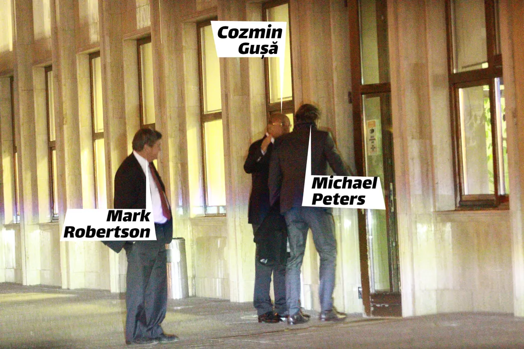 Cozmin Gușă, într-o discuție cu Michael Peters și Mark Robertson, la Aeroportul Băneasa