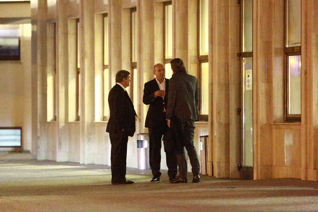 Cozmin Gușă, într-o discuție cu Michael Peters și Mark Robertson, la Aeroportul Băneasa