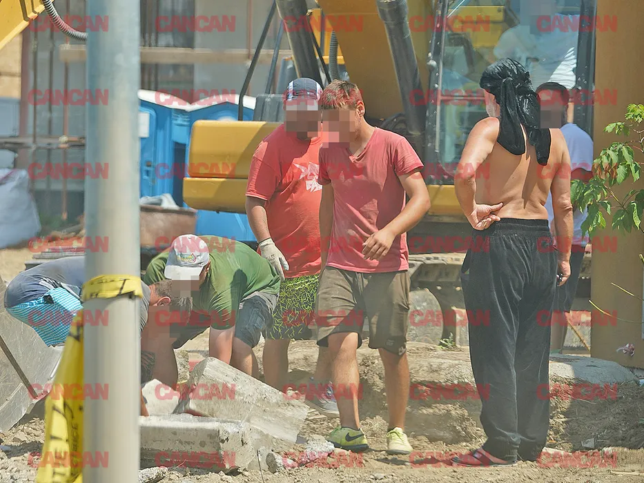 Gigi Becali la bustul gol pe șantier cu muncitorii