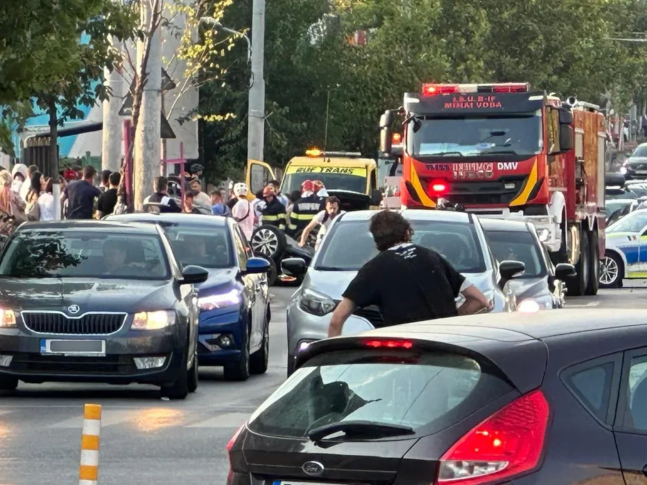 Breaking news! Accident grav în București! O mașină s-a răsturnat în cartierul Tineretului