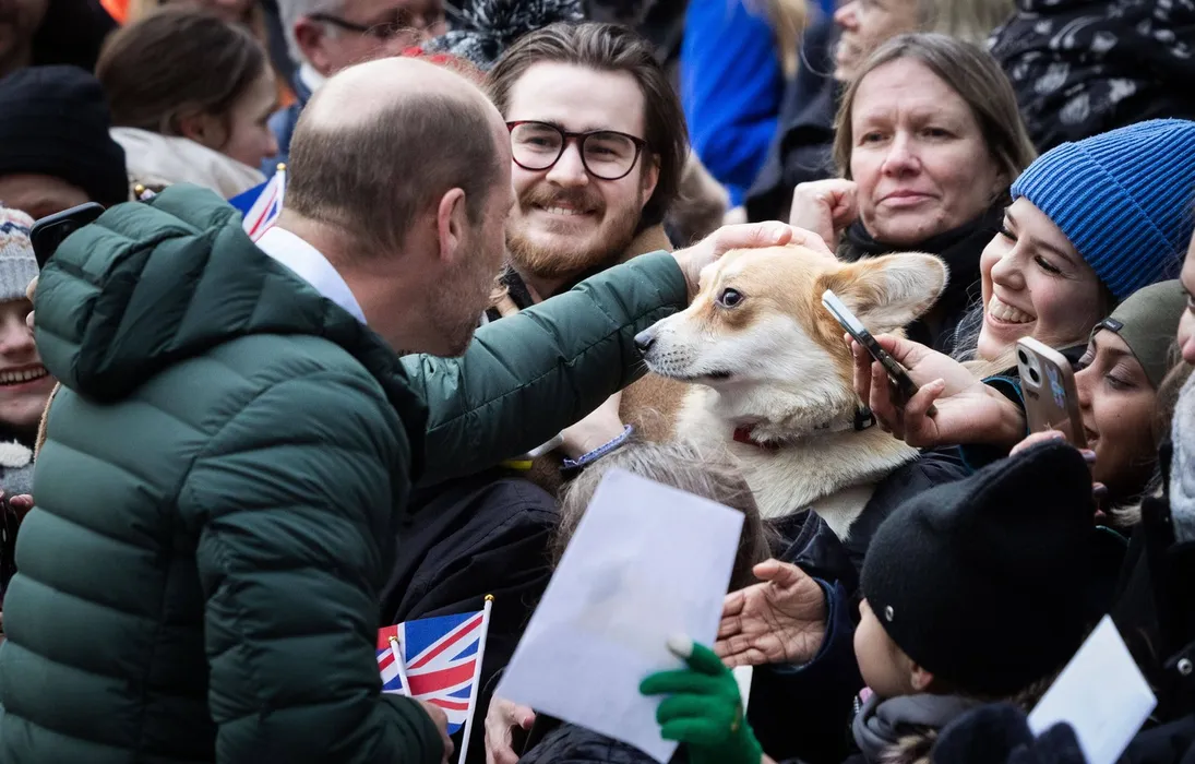 Prințul de Wales interacționează cu un câine în timpul unei plimbări pentru a întâlni membri ai publicului din Tallinn, în prima zi a vizitei sale în Estonia. Foto: Profimedia