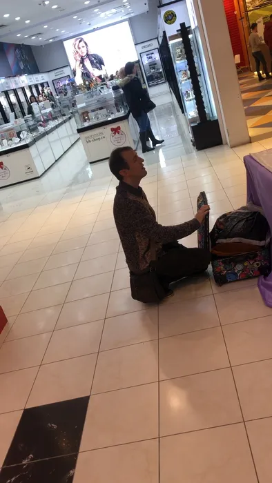 Aflat la mall, Călin Geambașu s-a pus în genunchi în fața unei hostese