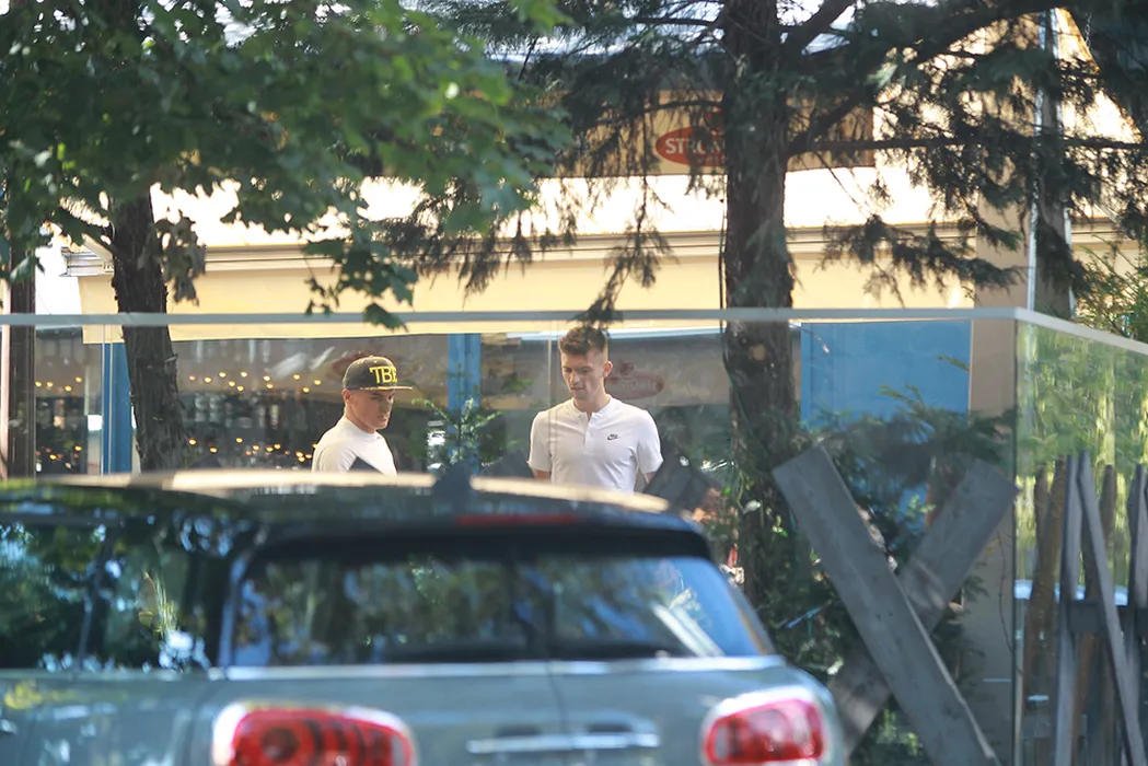 Florin Tănase și Iulian Dîrnea se îndreaptă către masa de la cafenea