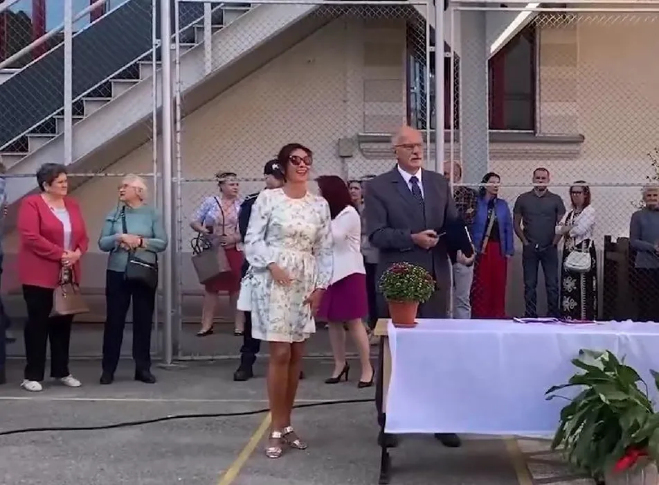 Carmen Iohannis a atras toate privirile în prima zi de școală/ sursă foto: captură video Mesageruldesibiu