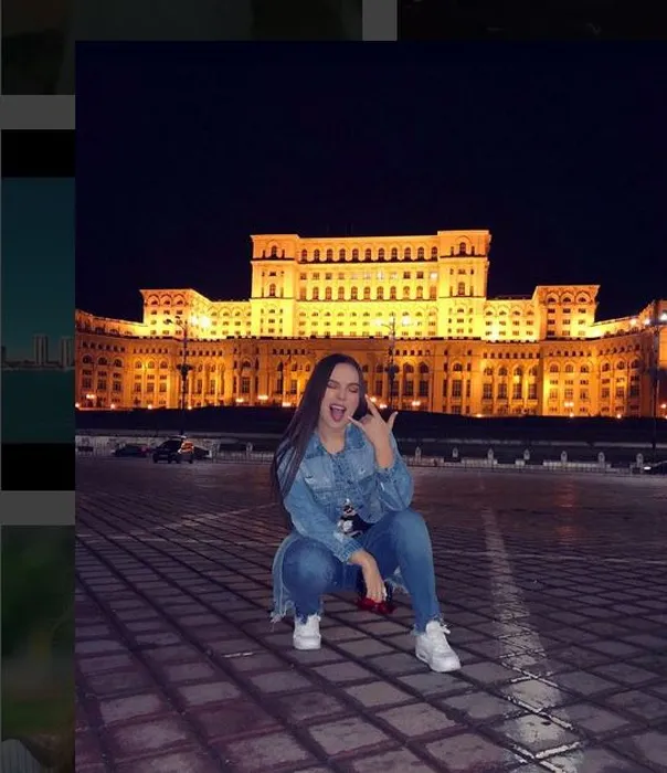 Poză spectaculoasă a Oanei, cu Casa Poporului în spate