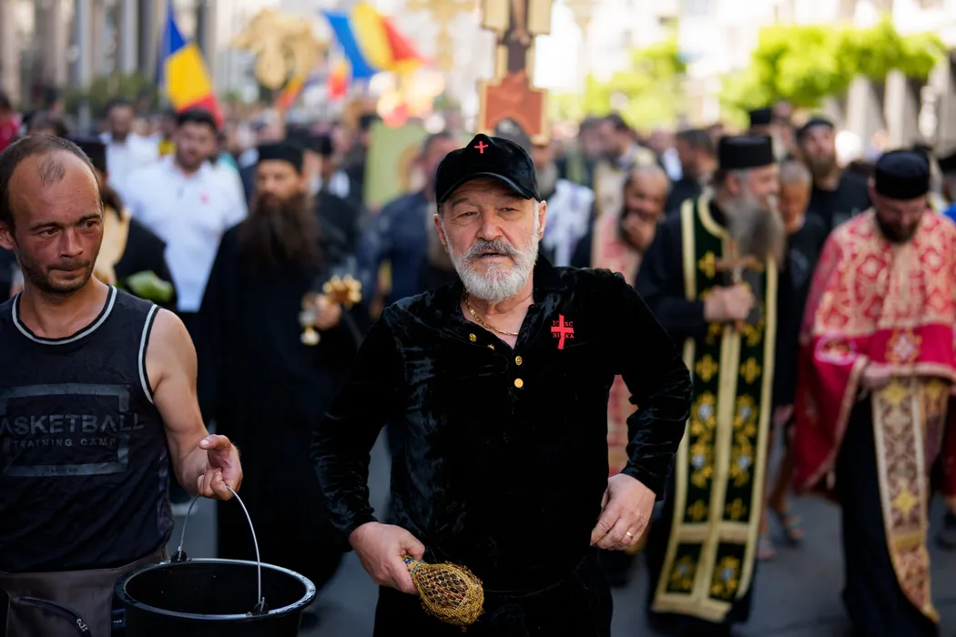 Gigi Becali merge in timpul unei contramanifestatii organizate de asociatia ''Fratia Ortodoxa'' fata de marsul comunitatii LGBTQ+ ''Bucharest Pride 2025'', in Bucuresti, duminica, 8 iunie 2025. Aproximativ 100 de persoane purtand cruci, icoane si agheasma au participat, duminica, la un mars de ''izgonire a duhurilor necurate lasate in urma de parada LGBTQ'' conform organizatorilor, pe acelasi traseu ca participantii la Bucharest Pride 2025. ANDREEA ALEXANDRU / MEDIAFAX FOTO