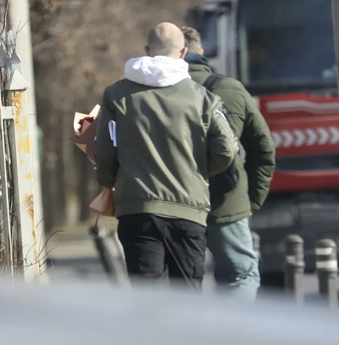 Cei doi buni amici se îndreaptă spre birourile Antenei 1 (SURSA FOTO: CANCAN.RO)