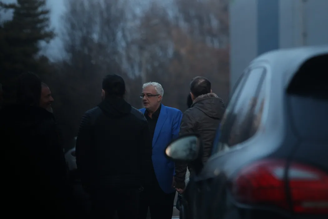Cătălin Crișan, la o șuetă în pauza de filmare