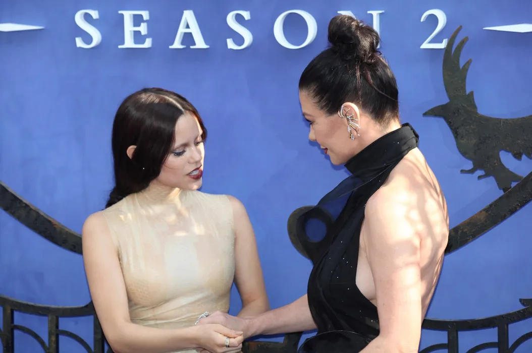 Catherine Zeta-Jones a eclipsat-o pe Jenna Ortega la premiera sezonului 2 din Wednesday! Rochia ei e demnă de Morticia