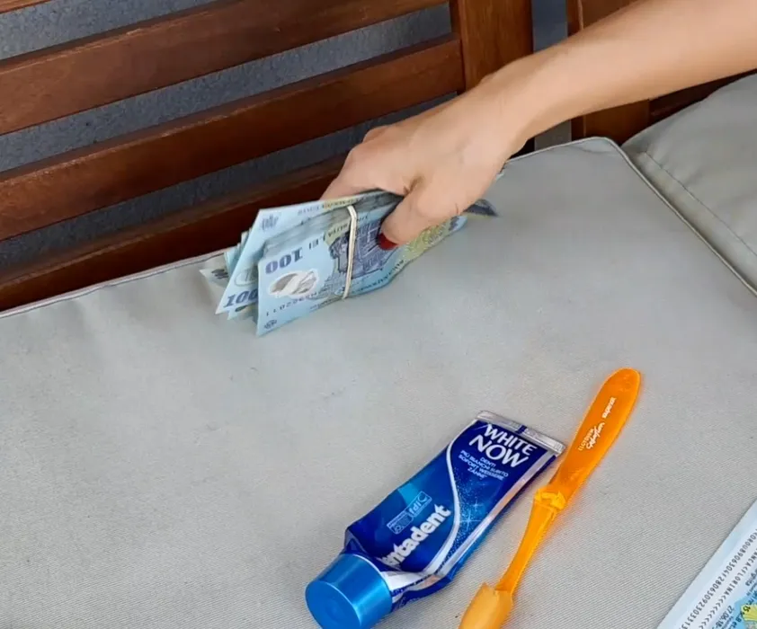 Banii, pasta de dinți, periuța și guma de mestecat, nelipsite din geanta ispitei