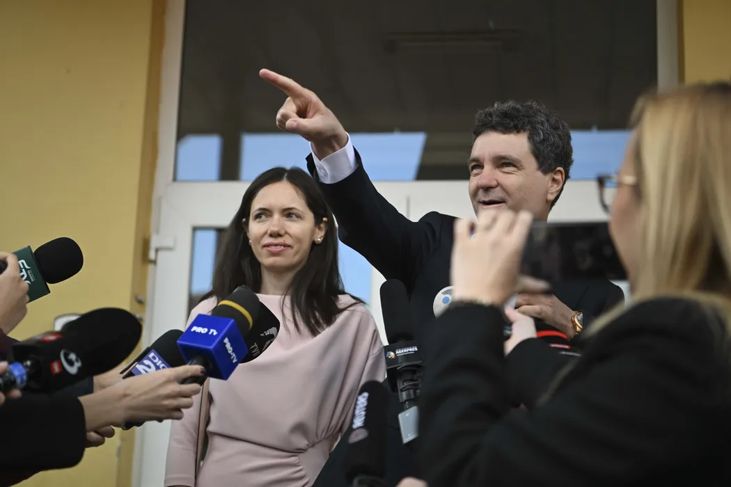 Mirabela Grădinaru și Nicușor Dan, la secția de votare/ Sursa foto: Inquam Photos/ Alex Nicodim