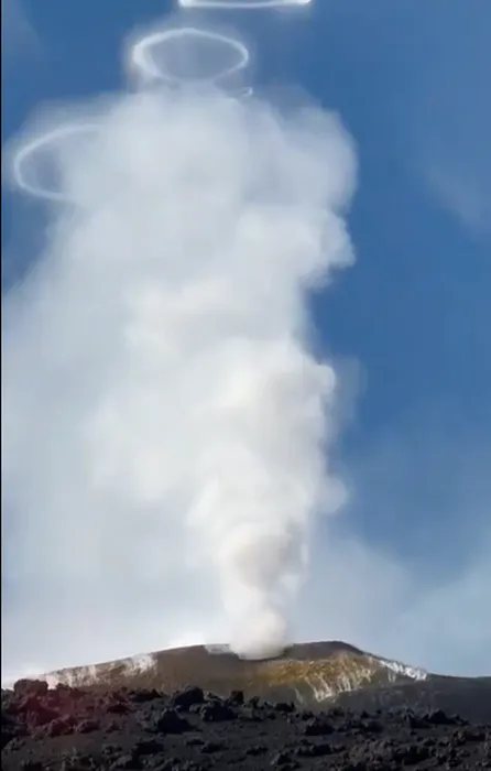 Cercuri de fum ies din Vulcanul Etna, din Italia / Foto: Captură Video